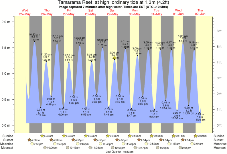 Image captured 7 minutes after high water (at high ordinary tide). Tide height was 1.3m (4.2 ft). Range 1.88m (6.2 ft). Toggle tide graph