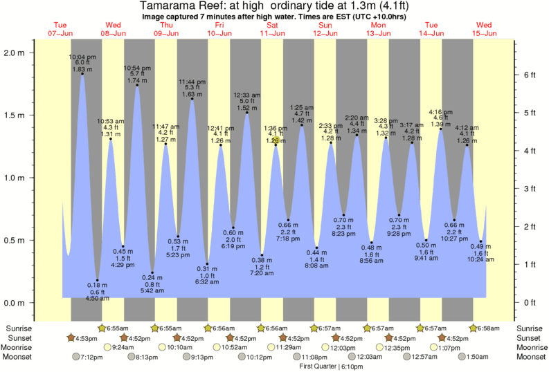 Image captured 7 minutes after high water (at high ordinary tide). Tide height was 1.3m (4.1 ft). Range 1.88m (6.2 ft). Toggle tide graph