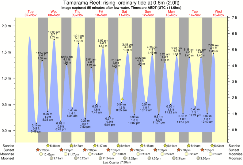 Image captured 55 minutes after low water (rising ordinary tide). Tide height was 0.6m (2.0 ft). Range 1.99m (6.5 ft). Toggle tide graph