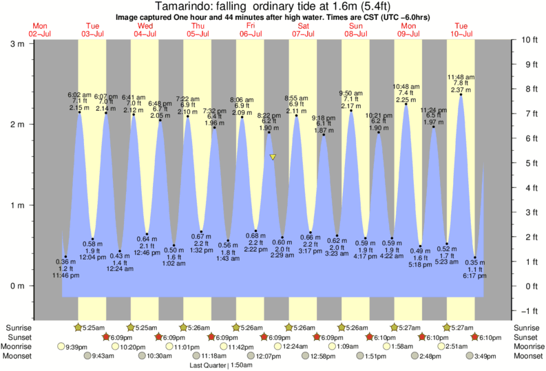 Image captured One hour and 44 minutes after high water (falling ordinary tide). Tide height was 1.6m (5.4 ft). Range 2.90m (9.5 ft). Toggle tide graph