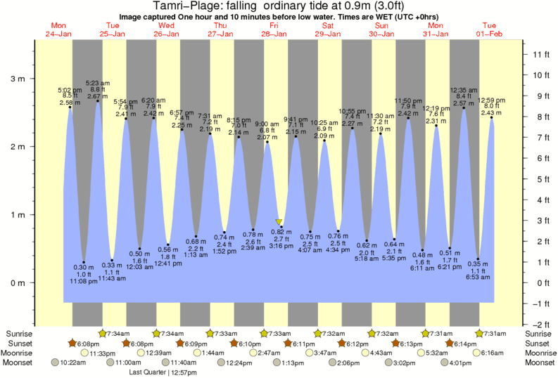 Image captured One hour and 10 minutes before low water (falling ordinary tide). Tide height was 0.9m (3.0 ft). Range 3.51m (11.5 ft). Toggle tide graph