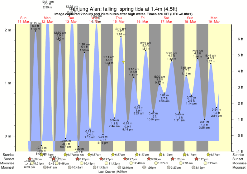 Image captured 2 hours and 29 minutes after high water (falling spring tide). Tide height was 1.4m (4.5 ft). Range 2.00m (6.6 ft). Toggle tide graph