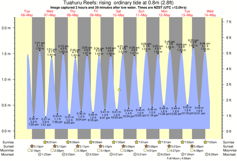 Image captured 2 hours and 39 minutes after low water (rising ordinary tide). Tide height was 0.8m (2.8 ft). Range 1.97m (6.5 ft). Toggle tide graph