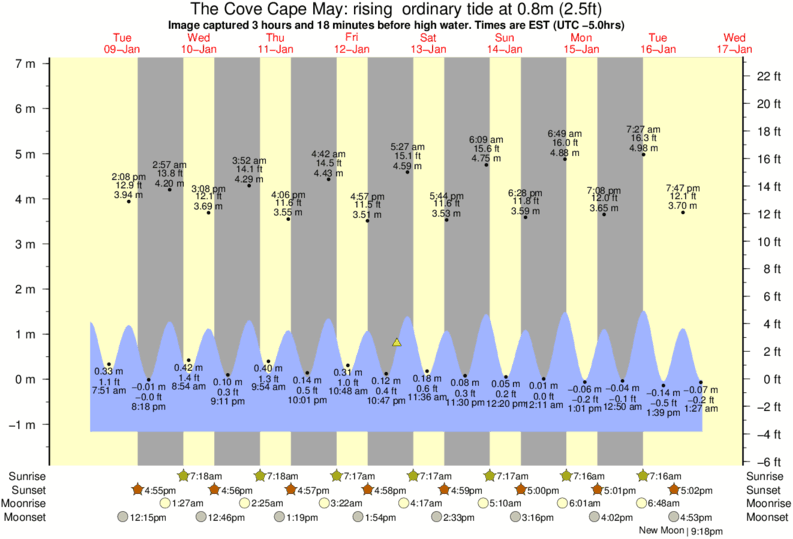 Forecast wind and swell just offshore from The Cove Cape May around the time the photo was taken