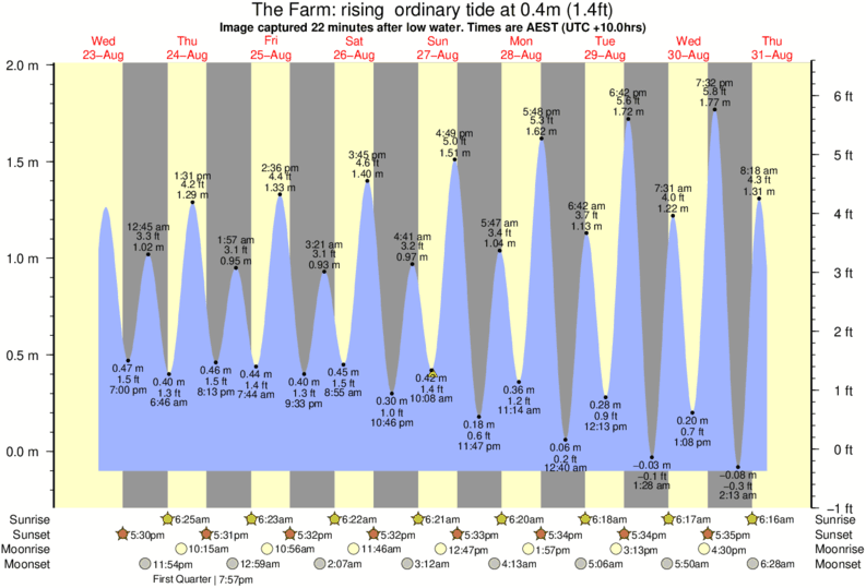 Image captured 22 minutes after low water (rising ordinary tide). Tide height was 0.4m (1.4 ft). Range 1.92m (6.3 ft). Toggle tide graph