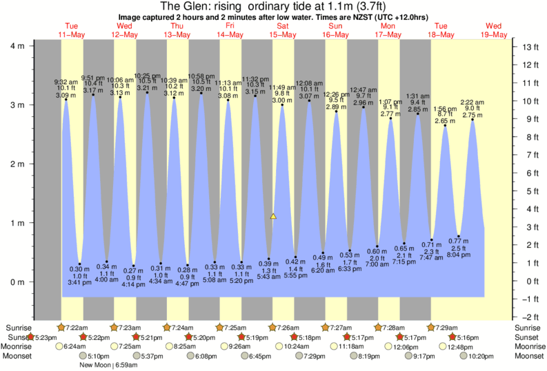 Image captured 2 hours and 2 minutes after low water (rising ordinary tide). Tide height was 1.1m (3.7 ft). Range 3.97m (13.0 ft). Toggle tide graph