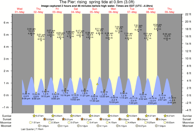 Image captured 2 hours and 46 minutes before high water (rising spring tide). Tide height was 0.9m (3.0 ft). Range 6.86m (22.5 ft). Toggle tide graph