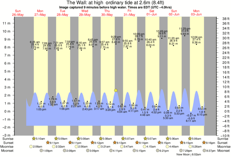 Image captured 9 minutes before high water (at high ordinary tide). Tide height was 2.6m (8.4 ft). Range 12.38m (40.6 ft). Toggle tide graph