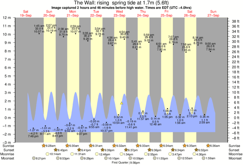 Image captured 2 hours and 46 minutes before high water (rising spring tide). Tide height was 1.7m (5.6 ft). Range 12.50m (41.0 ft). Toggle tide graph