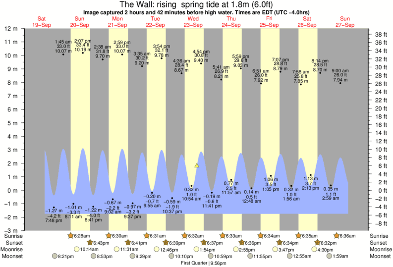 Forecast wind and swell just offshore from The Wall around the time the photo was taken
