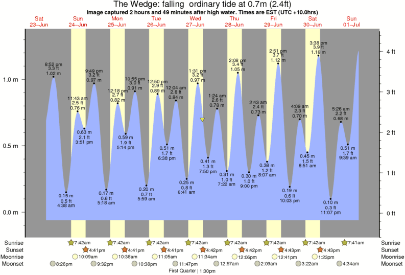 Image captured 2 hours and 49 minutes after high water (falling ordinary tide). Tide height was 0.7m (2.4 ft). Range 1.31m (4.3 ft). Toggle tide graph