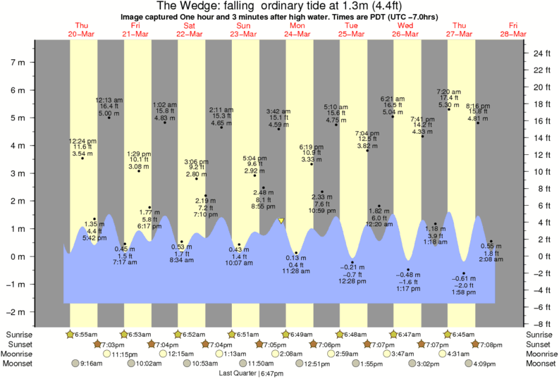 Image captured One hour and 3 minutes after high water (falling ordinary tide). Tide height was 1.3m (4.4 ft). Range 8.64m (28.3 ft). Toggle tide graph