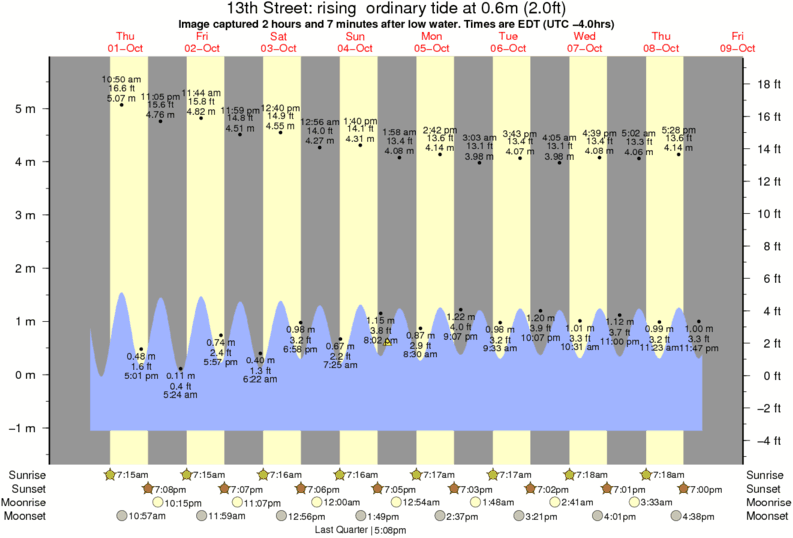 Image captured 2 hours and 7 minutes after low water (rising ordinary tide). Tide height was 0.6m (2.0 ft). Range 6.39m (21.0 ft). Toggle tide graph