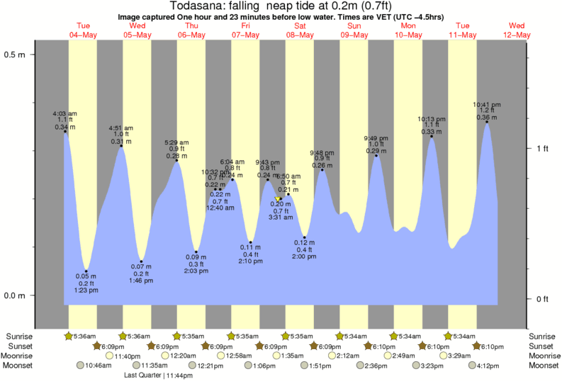 Image captured One hour and 23 minutes before low water (falling neap tide). Tide height was 0.2m (0.7 ft). Range 0.50m (1.6 ft). Toggle tide graph
