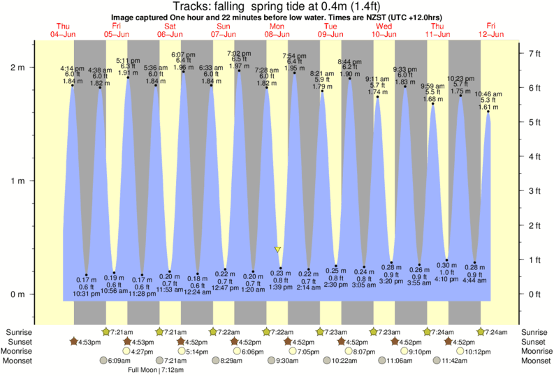 Image captured One hour and 22 minutes before low water (falling spring tide). Tide height was 0.4m (1.4 ft). Range 2.09m (6.9 ft). Toggle tide graph
