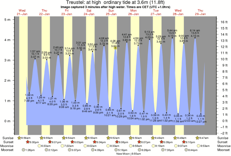 Image captured 3 minutes after high water (at high ordinary tide). Tide height was 3.6m (11.8 ft). Range 4.87m (16.0 ft). Toggle tide graph
