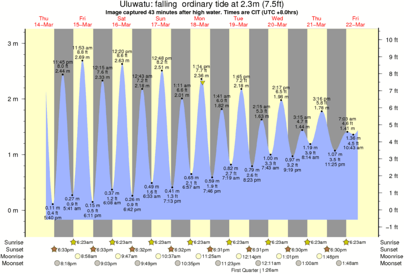 Image captured 43 minutes after high water (falling ordinary tide). Tide height was 2.3m (7.5 ft). Range 3.12m (10.2 ft). Toggle tide graph