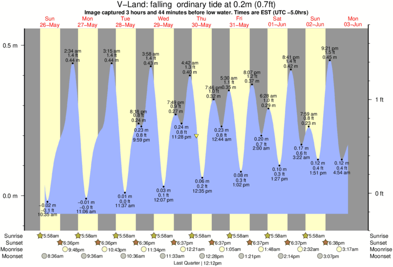 Image captured 3 hours and 44 minutes before low water (falling ordinary tide). Tide height was 0.2m (0.7 ft). Range 0.56m (1.8 ft). Toggle tide graph