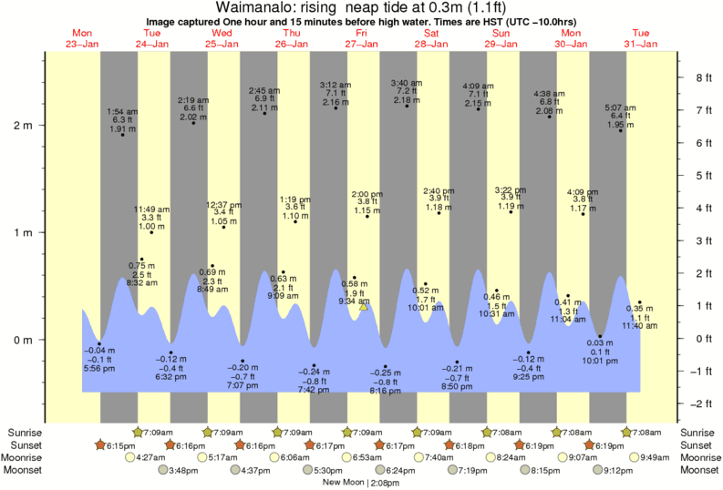 Forecast wind and swell just offshore from Waimanalo around the time the photo was taken
