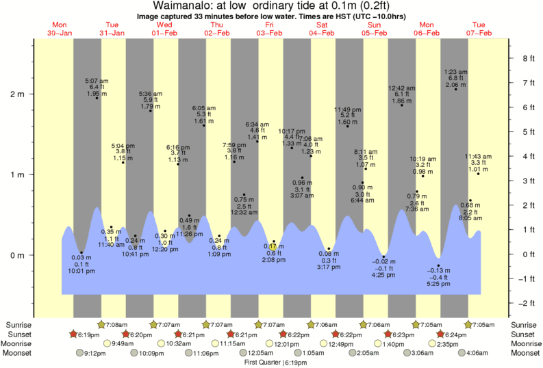 Forecast wind and swell just offshore from Waimanalo around the time the photo was taken