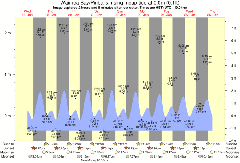 Forecast wind and swell just offshore from Waimea Bay/Pinballs around the time the photo was taken