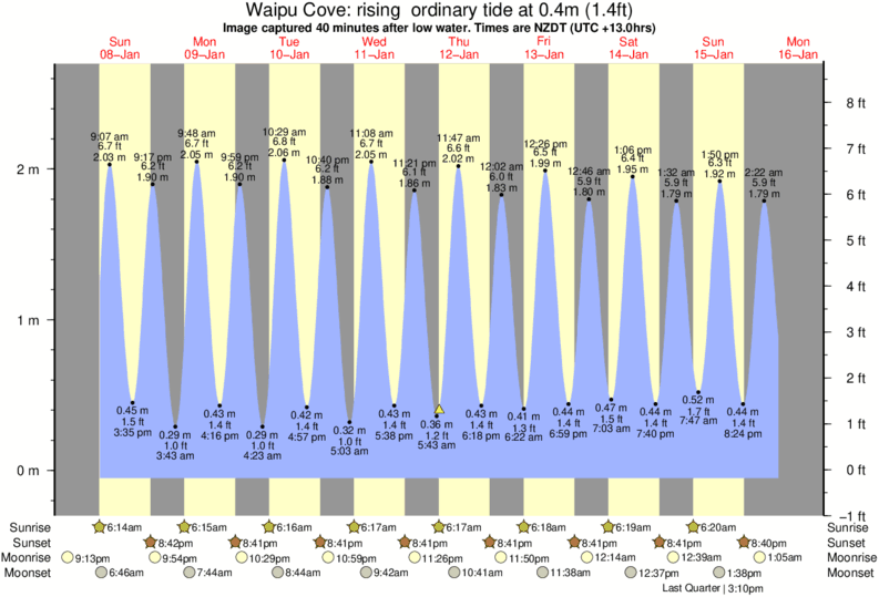 Forecast wind and swell just offshore from Waipu Cove around the time the photo was taken