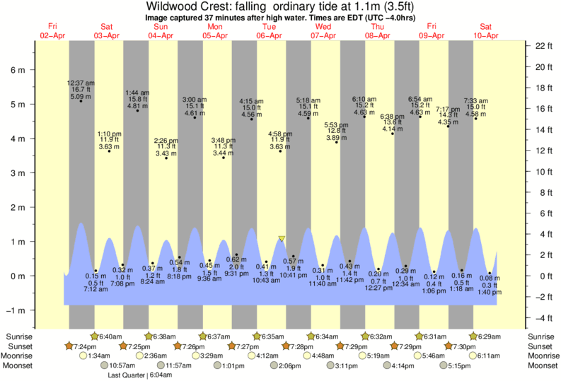 Forecast wind and swell just offshore from Wildwood Crest around the time the photo was taken