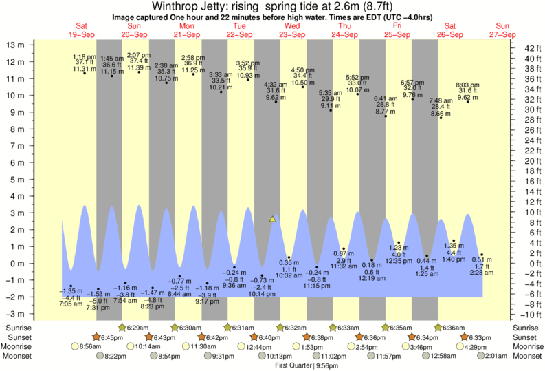 Image captured One hour and 22 minutes before high water (rising spring tide). Tide height was 2.6m (8.7 ft). Range 13.94m (45.7 ft). Toggle tide graph