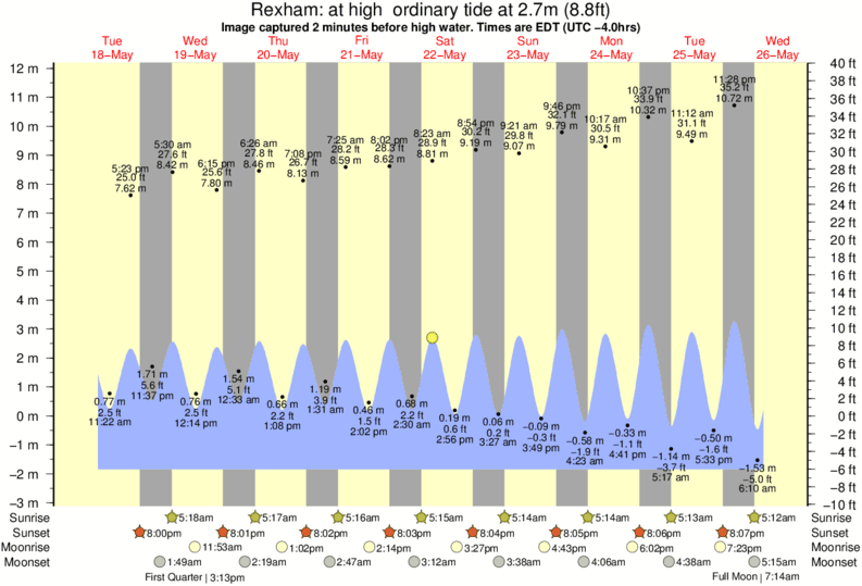 Image captured 2 minutes before high water (at high ordinary tide). Tide height was 2.7m (8.8 ft). Range 12.77m (41.9 ft). Toggle tide graph