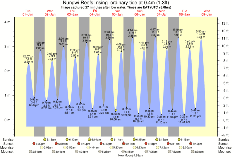 Forecast wind and swell just offshore from Nungwi Reefs around the time the photo was taken