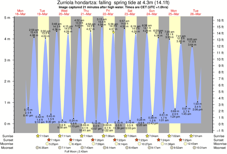 Image captured 21 minutes after high water (falling spring tide). Tide height was 4.3m (14.1 ft). Range 4.58m (15.0 ft). Toggle tide graph